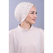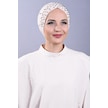 Kadın Tesettür İncili Taşlı Havuz Dış Bone Beyaz Beyaz
