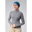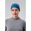 Kadın Tesettür Likralı Penye Dikişsiz Kaymaz Düz Bağlamalı Bone Petrol Mavisi