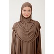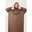 Kadın Tesettür Pamuklu Başörtülü Namaz Elbisesi Dantelli Tek Parça Penye Kumaş Kahverengi