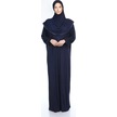 Kadın Tesettür Pamuklu Başörtülü Namaz Elbisesi Dantelli Tek Parça Penye Kumaş Lacivert Lacivert