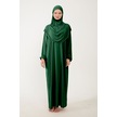 Kadın Tesettür Pamuklu Başörtülü Namaz Elbisesi Dantelli Tek Parça Penye Kumaş Zümrüt Yeşili