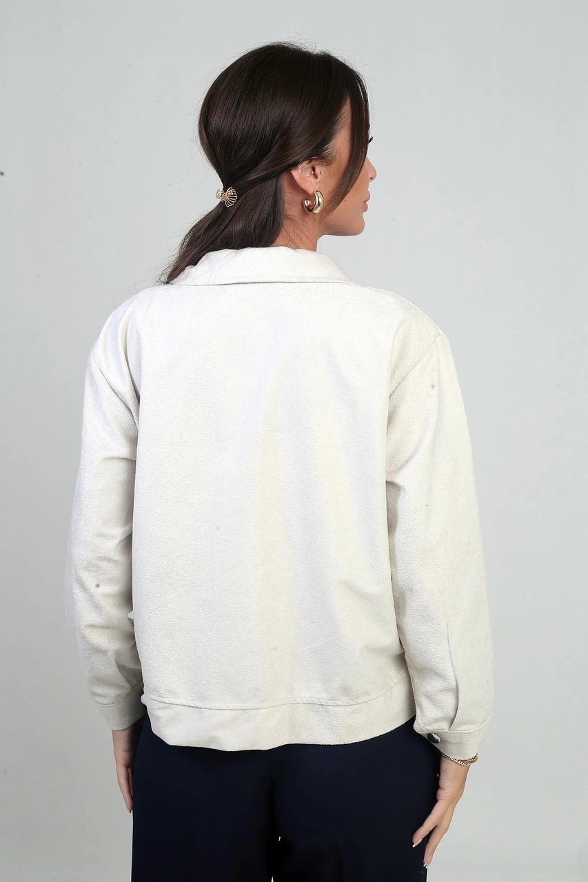 Kadın Torba Cepli Önü Fermuarlı Süet Mont-41919 Krem