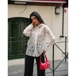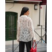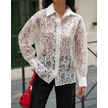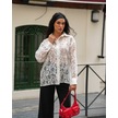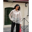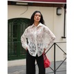 Kadın Transparan Çiçek Desenli Uzun Kollu Gömlek Beyaz