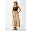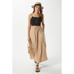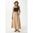 Kadın Trend Modal Serin Kumaş Bej Bel Lastikli Cepli Rahat Kalıp Uzun Etek