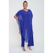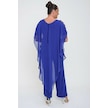 Kadın Tulum Büyük Beden Kol Taş Şeritli Şifon Üstlü Saks