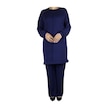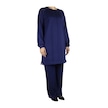Kadın Tunik Önü Dikişli Altı Bantlı Pantolon Beli Lastikli Önü Dikişli İkili Takım Lacivert