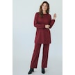 Kadın Tunik Önü Dikişli Altı Bantlı Pantolonun Beli Lastikli Önü Dikişli İkili Takım Bordo