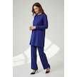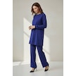 Kadın Tunik Önü Dikişli Altı Bantlı Pantolonun Beli Lastikli Önü Dikişli İkili Takım Mavi