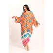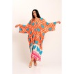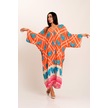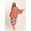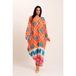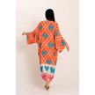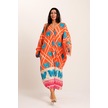 Kadın Turuncu Kelebek Desenli V Yaka Yarasa Kol Cepli Oversize Uzun Gömlek Elbise - Turuncu