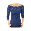 Kadın Üstler Eğik Yaka Uzun Kollu Dantel Gömlek Oyuk Dantel Eklemeli Düz Renk Dar Kesim Nakış Dantel Çiçekli Üstler Koyu Mavi