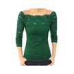 Kadın Üstler Eğik Yaka Uzun Kollu Dantel Gömlek Oyuk Dantel Eklemeli Düz Renk Dar Kesim Nakış Dantel Çiçekli Üstler Koyu Yeşil