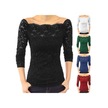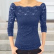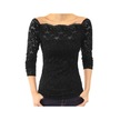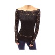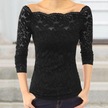 Kadın Üstler Eğik Yaka Uzun Kollu Dantel Gömlek Oyuk Dantel Eklemeli Düz Renk Dar Kesim Nakış Dantel Çiçekli Üstler Siyah