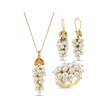 Kadın Üzümlü Doğal İnci Küpe Kolye Yüzük Üçlü Set 8 / Sarı Gümüş