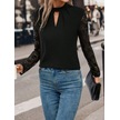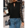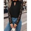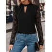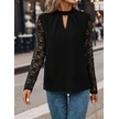 Kadın Uzun Dantel Kollu Damla Detay Yakalı Ithal Krep Bluz Siyah