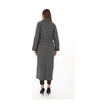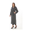 Kadın Uzun Kaşe Kaban Yünlü Dokuma Kaşmir Kumaş, Kruvaze Yaka, Kuşaklı Astarlı Tesettür Uyumlu Şık Füme