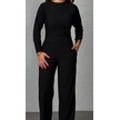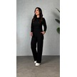 Kadın Uzun Kol Bisiklet Yaka Bürümcük Bluz Ve Pantolon Ikili Takım Siyah
