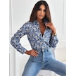 Kadın Uzun Kol Cep Detay Çiçek Baskılı Mosskrep Kumaş Gömlek Mavi
