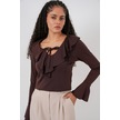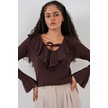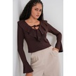 Kadın Uzun Kol Crop Bluz 979 - Kahverengi Kahverengi