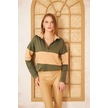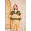 Kadın Uzun Kol Fermuarlı Polo Yaka Color Block Basic Salaş Sweatshirt Bluz 3471210 Haki