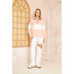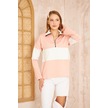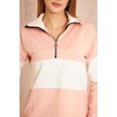 Kadın Uzun Kol Fermuarlı Polo Yaka Color Block Basic Salaş Sweatshirt Bluz 3471210 Pudra
