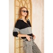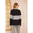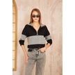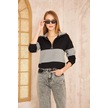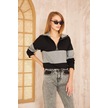 Kadın Uzun Kol Fermuarlı Polo Yaka Color Block Basic Salaş Sweatshirt Bluz 3471210 Siyah - Gri