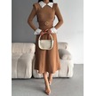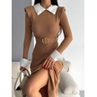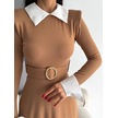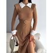 Kadın Uzun Kol Gömlek Yaka Ve Vatka Detay Kemer Dahil Midi Boy Elbise Çok renkli