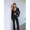 Kadın İspanyol Paça Pantolon Uzun Kollu Parmak Geçirmeli Crop Takım Gri