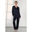 Kadın Uzun Kol Önden Düğmeli Saten Lacivert Pijama Takım C7t3n0o4 001