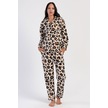 Kadın Uzun Kol Polar Önden Düğmeli Leopar Bej Pijama Takım C7t6n0o304 001