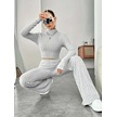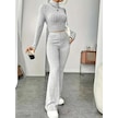Kadın Uzun Kollu Balıkçı Yaka Krop Ve Pantolon Şardonlu Kaşkorse Ikili Takım Gri