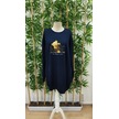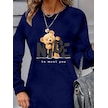 Kadın Uzun Kollu Bisiklet Yaka Ayı Desenli Viskon Iki Iplik Elbise Lacivert