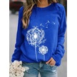 Kadın Uzun Kollu Bisiklet Yaka Çiçek Desenli Viskon Bluz Mavi