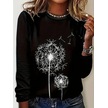 Kadın Uzun Kollu Bisiklet Yaka Çiçek Desenli Viskon Bluz Siyah