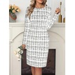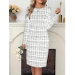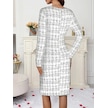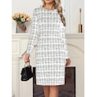Kadın Uzun Kollu Bisiklet Yaka Desenli Dalgıç Kısa Elbise Beyaz