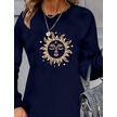 Kadın Uzun Kollu Bisiklet Yaka Güneş Desenli Viskon Iki Iplik Elbise Lacivert