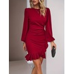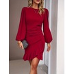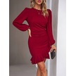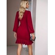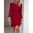Kadın Uzun Kollu Bisiklet Yaka Önden Volanlı Ithal Krep Elbise Kırmızı