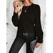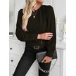 Kadın Uzun Kollu Bisiklet Yaka Pileli Ithal Krep Bluz Siyah