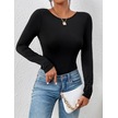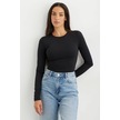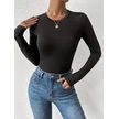 Kadın Uzun Kollu Bisiklet Yaka Süprem Bluz Siyah