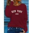 Kadın Uzun Kollu Bisiklet Yaka Yazı Baskılı Viskon Bluz Bordo