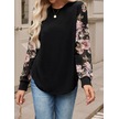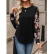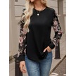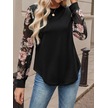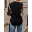 Kadın Uzun Kollu Bisiklet Yakalı Kolun Çiçek Desenli Viskon Iki Iplik Bluz Siyah