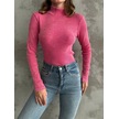 Kadın Uzun Kollu Boğazlı Yaka Asit Yıkamalı Kaşkorse Kumaş Kazak Pembe
