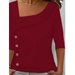 Kadın Uzun Kollu Geometrik Yaka Detay Yandan Düğmeli Viskon Iki Iplik Bluz Bordo
