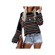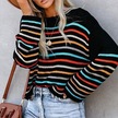 Kadın Uzun Kollu Günlük Düşük Omuz Örgü Kazak Renkli Çizgili Büyük Boy Kazak Üstler Siyah