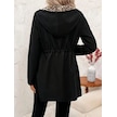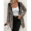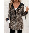 Kadın Uzun Kollu Kapşonlu Çift Taraflı Cepli Bağcıklı Fermuarlı Viskon Iki Iplik Ceket Leopar