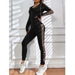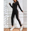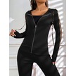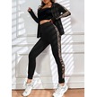 Kadın Uzun Kollu Kapşonlu Fermuarlı Bağcıklı Viskon Iki Iplik Bluz Ve Pantolon Tayt Siyah