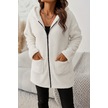 Kadın Uzun Kollu Kapşonlu Önden Fermuarlı Cepli Welsoft Ceket Bej