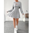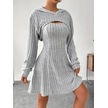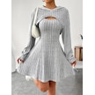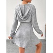 Kadın Uzun Kollu Kapüşonlu Ceket Üst Ve Askısız Kare Yaka A Kesim Şardonlu Kaşkorse Elbise Gri