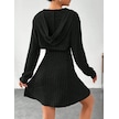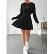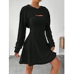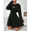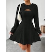 Kadın Uzun Kollu Kapüşonlu Ceket Üst Ve Askısız Kare Yaka A Kesim Şardonlu Kaşkorse Elbise Siyah