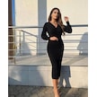 Kadın Uzun Kollu Kruvaze Yaka Büzgü Ve Balon Kol Detay Krep Kumaş Maxi Boy Elbise Siyah