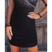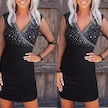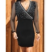 Kadın Uzun Kollu Kruvaze Yaka Üst Kısım Taşlı Detay Krep Mini Boy Elbise Siyah